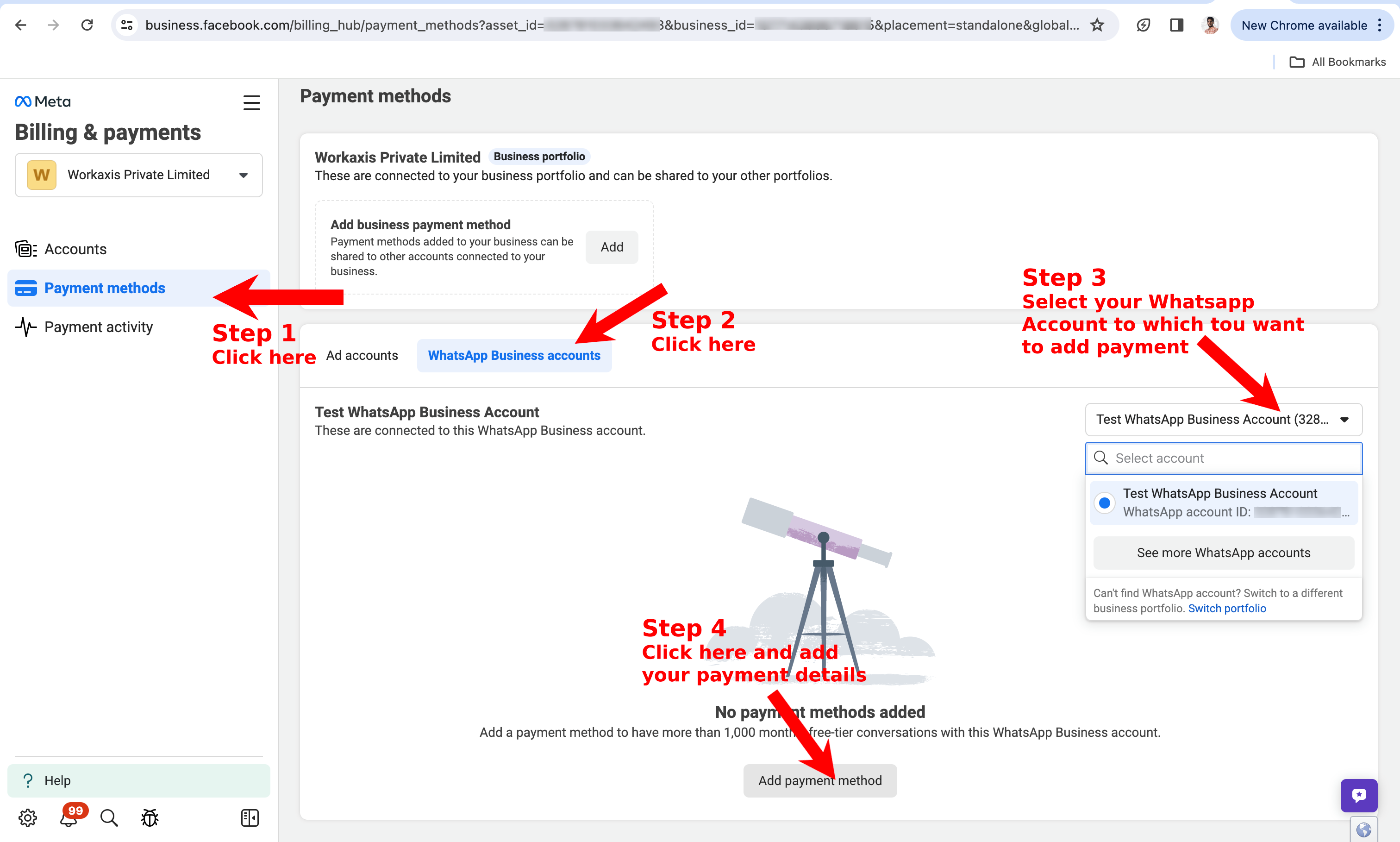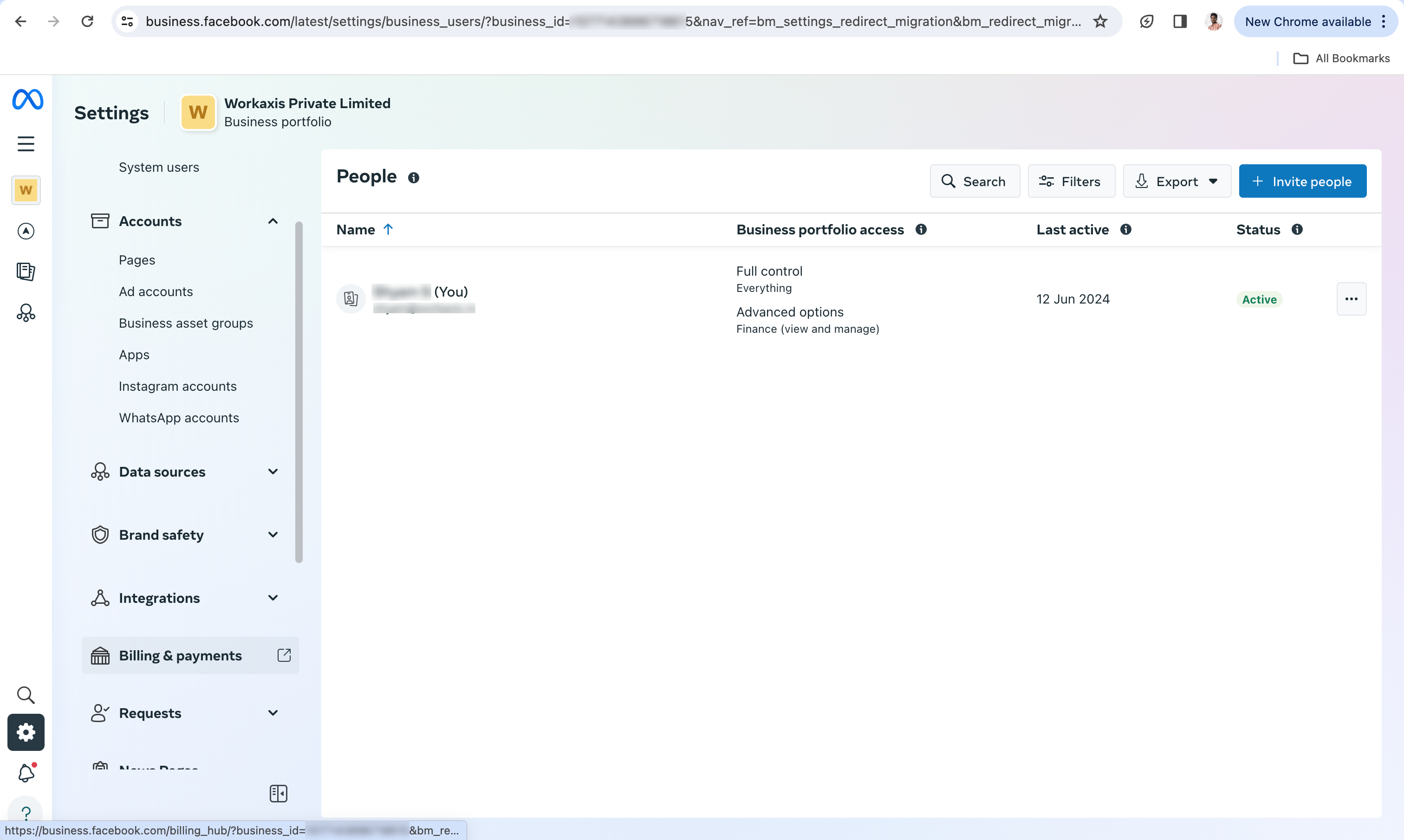 1. Go to facebook business page and click on Billing and Payment from the slide menu on the left.