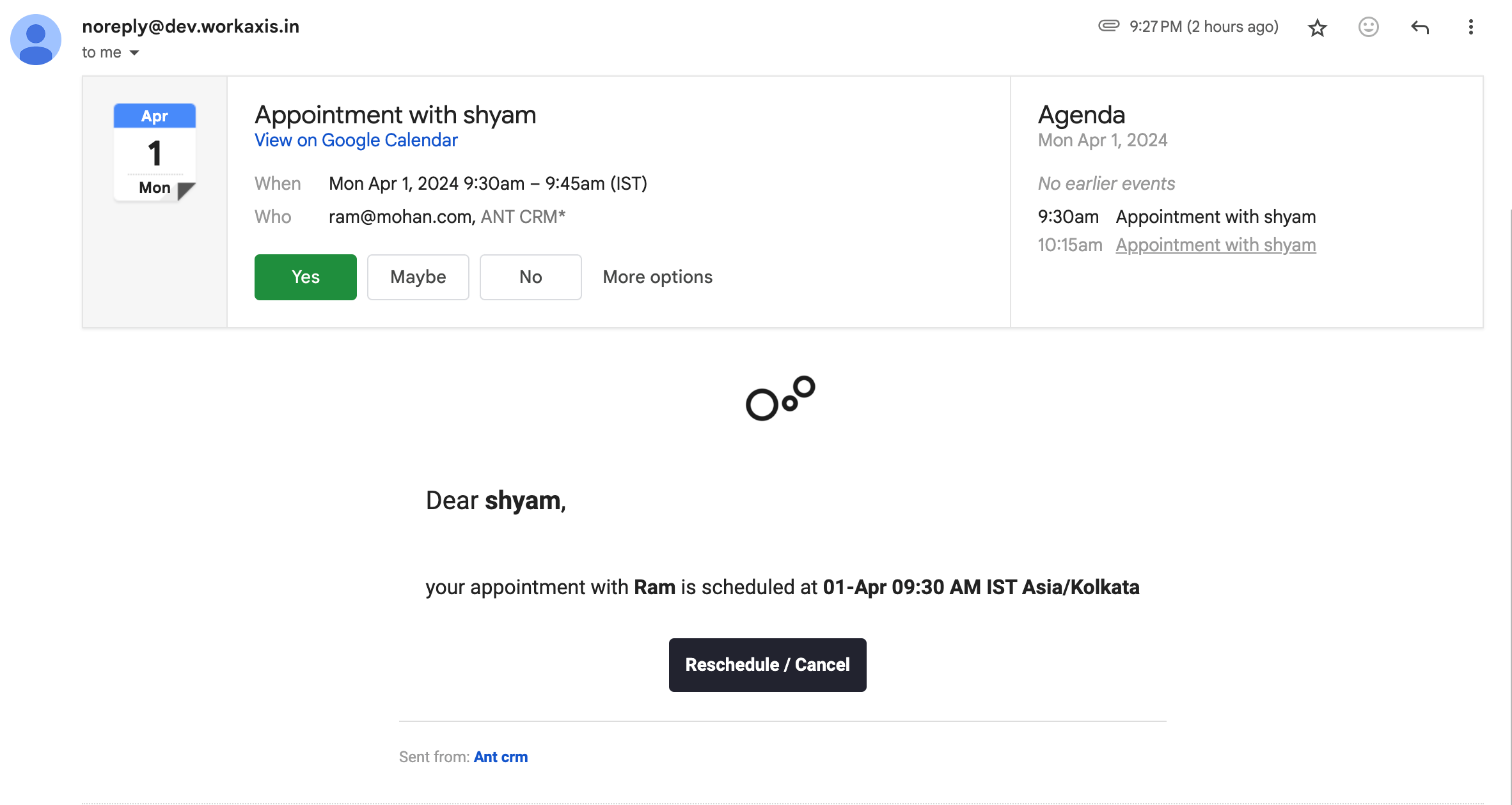 Clients appreciate the flexibility to reschedule appointments when necessary, and Ant CRM makes it easy for them to do so. Clients have the option to reschedule or cancel the appointment with ease. This feature not only improves client satisfaction but also reduces no-shows and cancellations, ultimately increasing your appointment success rate.