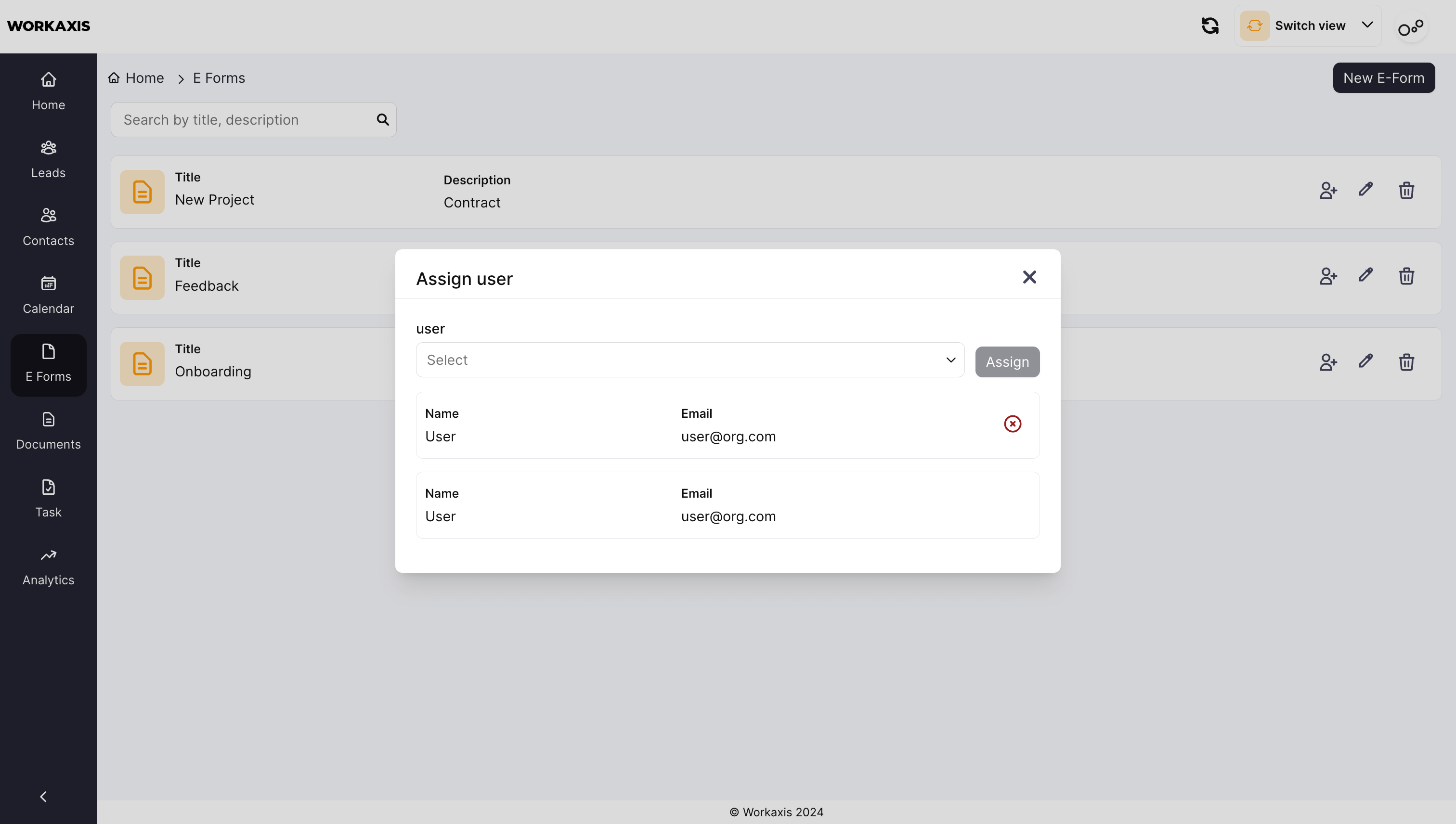 Once created, E-Forms can be assigned to staff members with just a few clicks. Ant CRM allows owners and admins to define user permissions, ensuring that only authorized personnel can access and manage assigned E-Forms. This granular control over access ensures data security and integrity throughout the form submission process.
