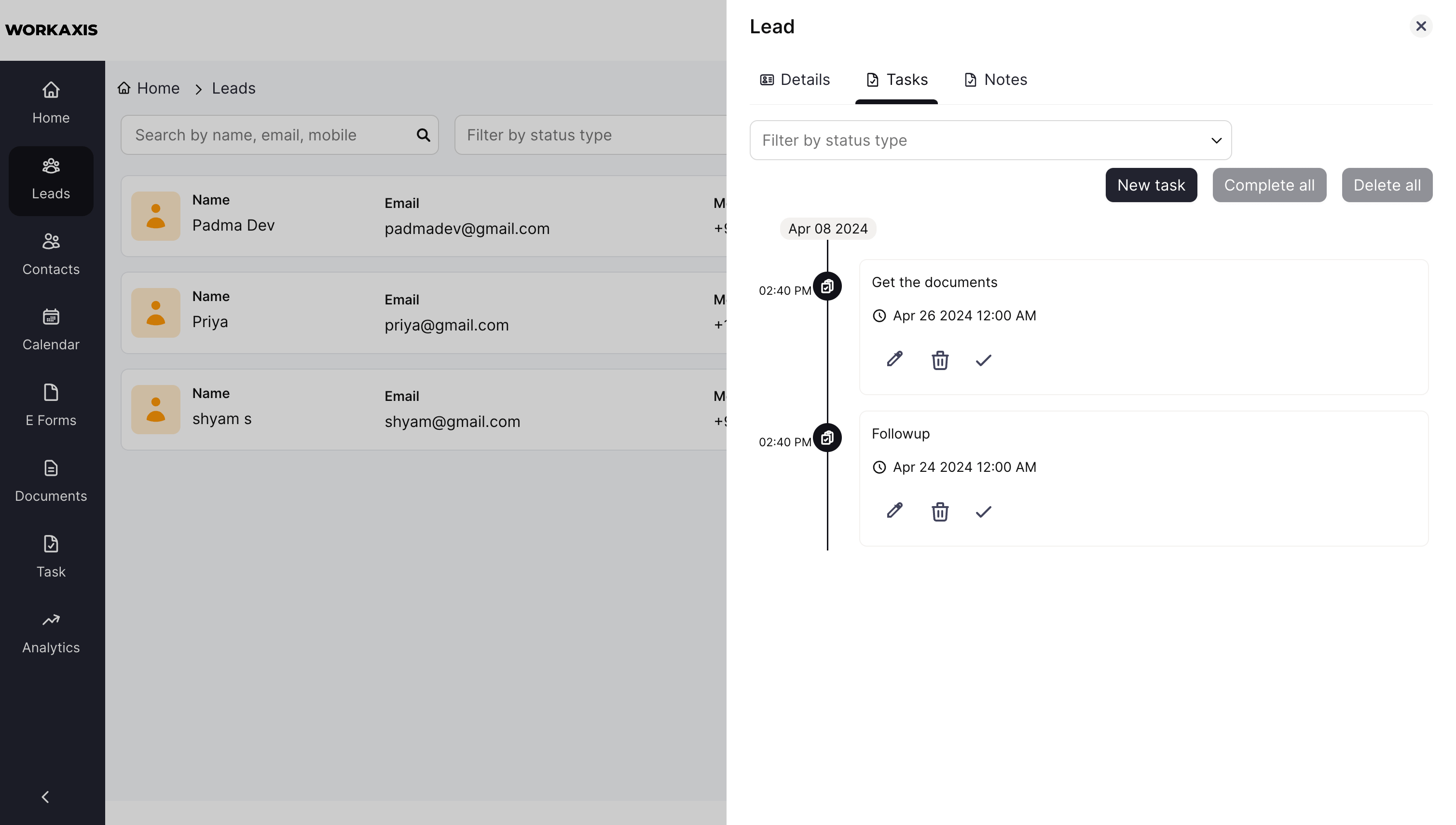 Users have the capability to append notes and tasks to leads, facilitating proficient follow-up and nurturing strategies. Moreover, for contacts ANT CRM seamlessly integrates with prominent communication channels such as WhatsApp, enabling businesses to interact with leads in real-time.