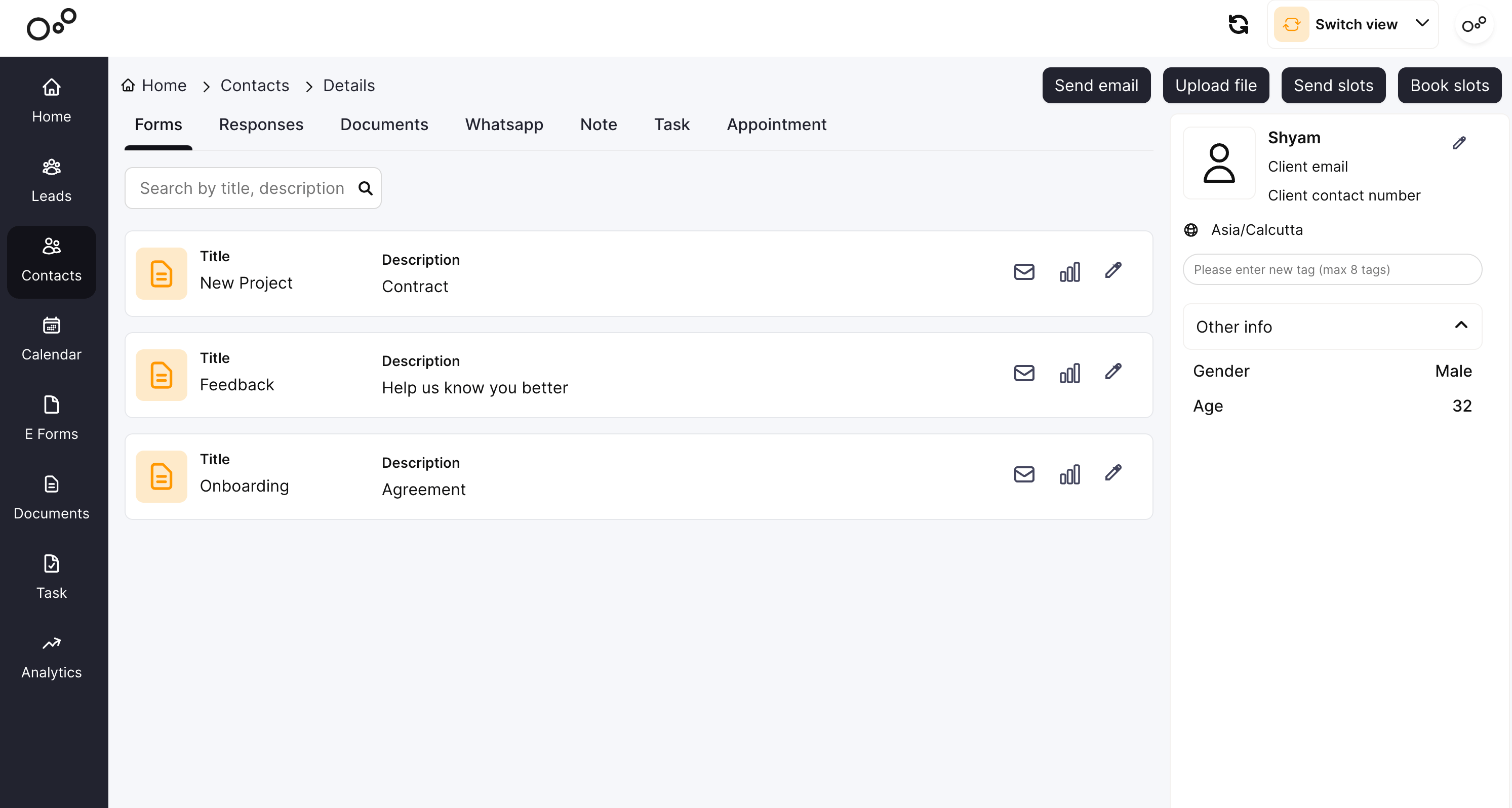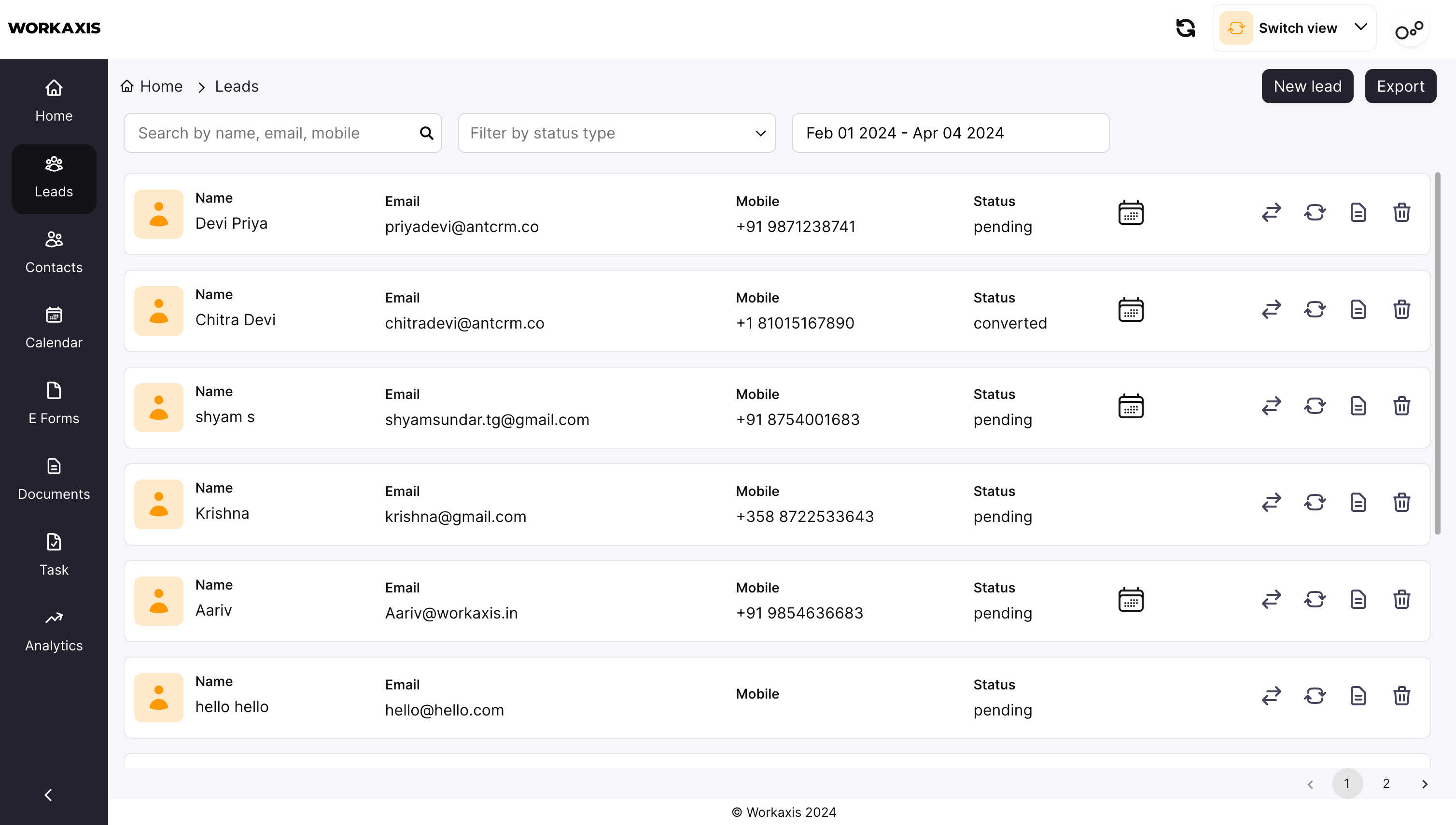 With ANT CRM, lead conversion is seamless and efficient. Businesses can easily convert leads into contacts, allowing for continued engagement and relationship-building. Contacts within ANT CRM come with a host of features, including WhatsApp chat integration, e-forms, and document storage, further enhancing communication and collaboration with customers.