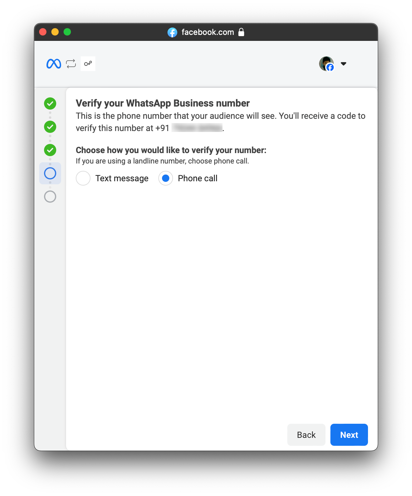 4. Once phone number registered successfully you will see a success message, And your phone number details.